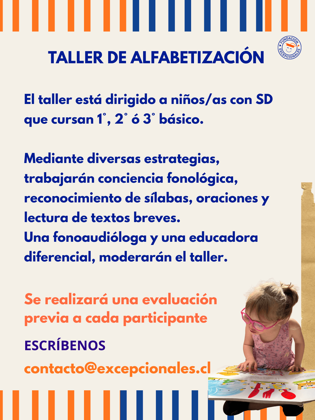 A través de estrategias visuales, trabajo de conciencia fonológica avanzada, comprensión lectora, producción escrita guiada y actividades multisensoriales, buscamos consolidar la decodificación, ampliar vocabulario y favorecer la expresión escrita con mayor autonomía.